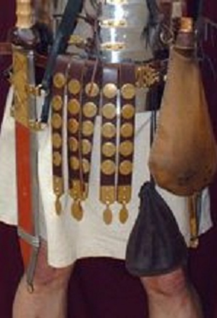 The belt (Cingilum) was a studded leather belt designed to offer a bit of groin protection and help weigh down the tunic, it also had things hanging from it like a dagger or money purse. |