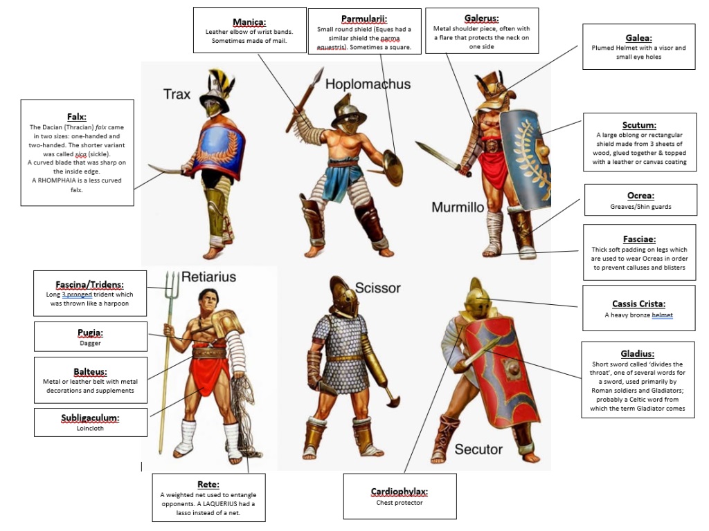 Some gladiators were the sports stars of their time they were also the entertainment in a brutal world of death. Most were slaves taken from another country and forced into the gladiatorial world or paid volunteers to entertain and also bring riches to their owner 'Lanista'. He would own a gladiator school where he would train the gladiators, they would live in close confinement and work hard all day training in the various skills. They were fed a basic diet and were worked hard to be fit and strong to fight. Some of the more successful gladiators were considered to be elite sporting heroes and possess special powers and things like their blood were collected and used to give mythical strength to the rich. If a gladiator fought well and survived the brutal years they may have been granted their freedom and this was demonstrated by presenting them with a wooden sword 'Rudius' a symbol of your prowess as a ex-gladiator, and also a sign of your new found free status in society that may bring great prestige as an ex superstar. Some gladiators were professionals some were slaves, criminals, captives or Christians, they were basically cannon fodder. They had little fighting experience or battle fitness and most were certainly going to die against a stronger more skilled professional opponent. Sometimes they were forced to fight each other to the death , criminal against criminal or even against wild animals like lions. These non professional people were considered worthless with no value, unlike the professional gladiator who was like a premier league footballer today who had a fan base and were considered very special especially if successful in the arena. Contrary to popular belief not all fights ended in death as some of the Gladiators were very valuable and it would have been a waste of money for them to die so they would fight until they were "bested" and beaten to submission. Although many did die in the arena as the crowd needed to be pleased with blood, the winner would be chosen by the games master and crowd. Because some were so famous they were very popular and crowds would shout their names and rival fans would often fight in the crowd when their champion was being beaten. This all sounds very familiar with modern football matches and the similarities are uncanny. A stadium with crowds all facing a central point, watching the games and cheering until there is a victory, loss or a draw. Sometimes great battles and victories were reenacted to relive the glories of the Roman empire on the battlefields of the conquered nations and these sort of things involved slaves and criminals wiped out as the vanquished enemies. There were several types of gladiators each with their own armour, weapons, outfit and fighting skills There were a 'Murmillo' a 'Thracian' a 'Samnite' and a 'Retiarius' and many more types, each were trained in their specialist skill and they were matched in the arena for maximum entertainment. These were the elite and most valuable type of gladiators that lived and died in the name of entertainment for the masses. |