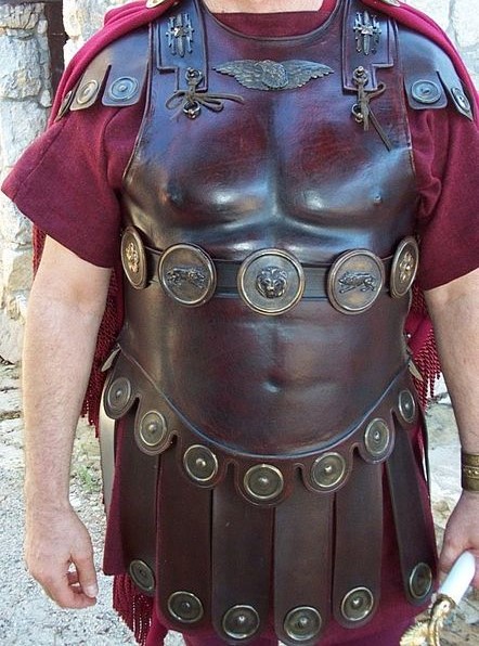 The final type of armour is a muscled cuirass this was made from leather or metal and sometimes was highly polished. It was mainly worn my senior ranks or for ceremonies but could be used in battle. Not worn by the rank and file soldier and often decorated with symbols like mythical animals and Gods |