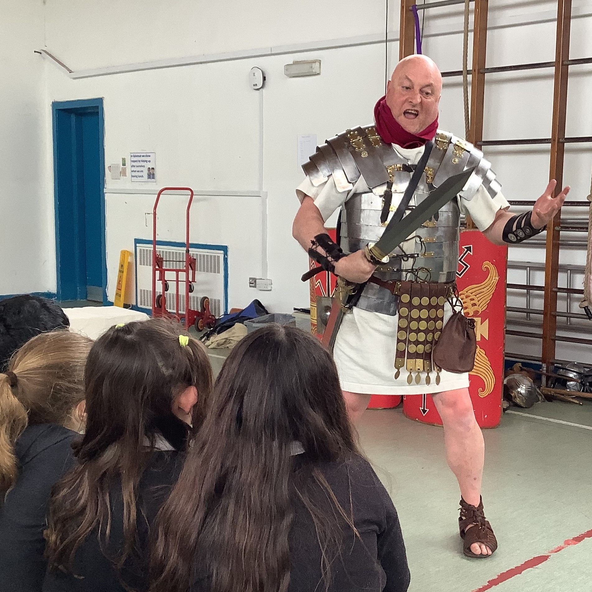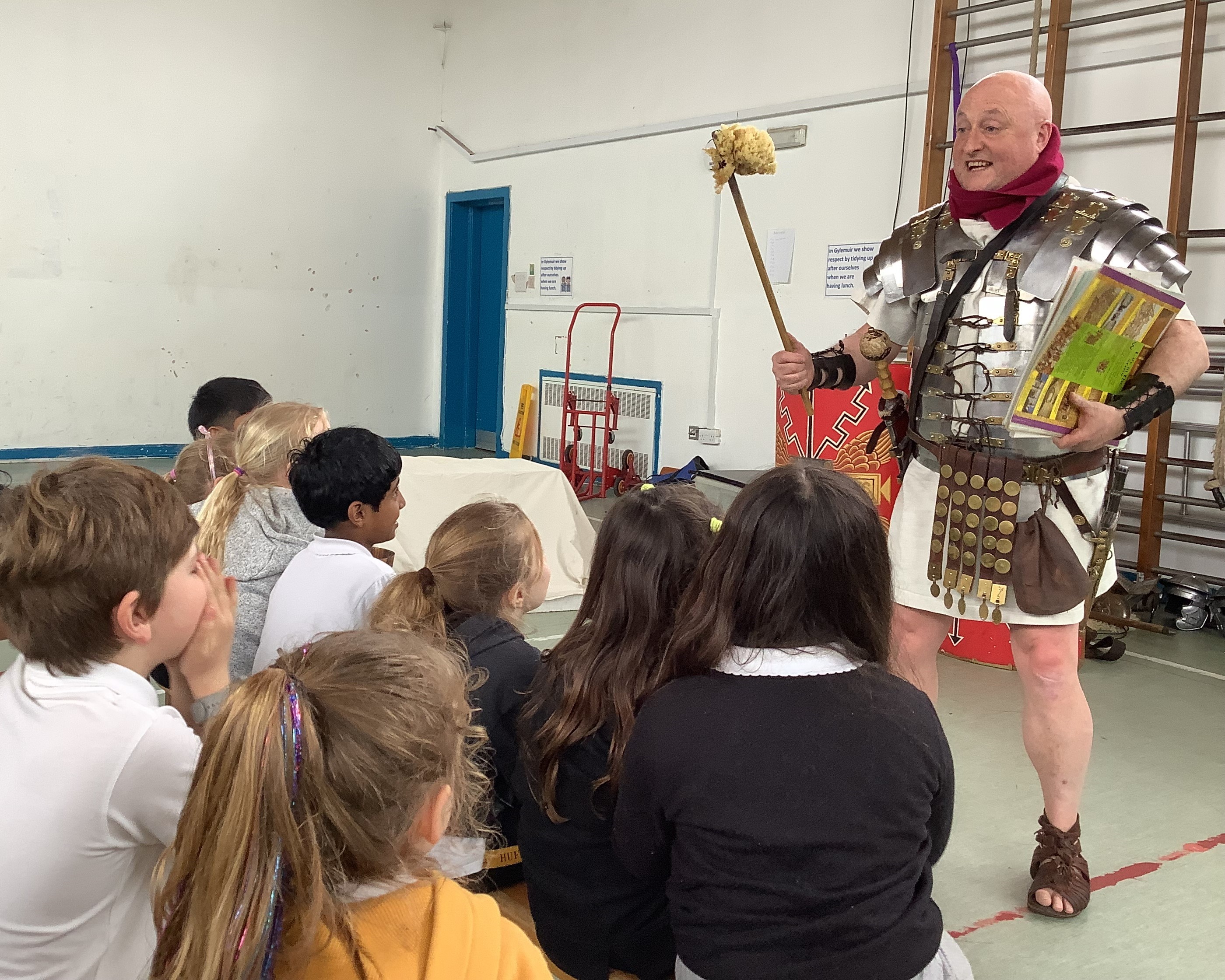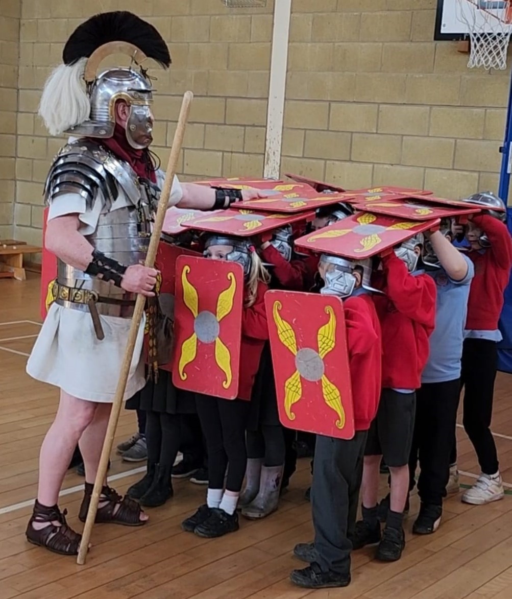 The kids learning about what it was like to be a Roman soldier in Britain 2000 years ago.